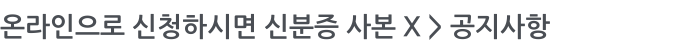 온라인으로 신청하시면 신분증 사본 X 페이지 정보 작성자 최고관리자 작성일13-02-02 15:45 조회4,512회 댓글0건 이전글 다음글 목록 본문 온라인으로 신청하시는 분은 신분증사본을 발송하실 필요가 없습니다. 댓글목록 등록된 댓글이 없습니다. 이전글 다음글 목록